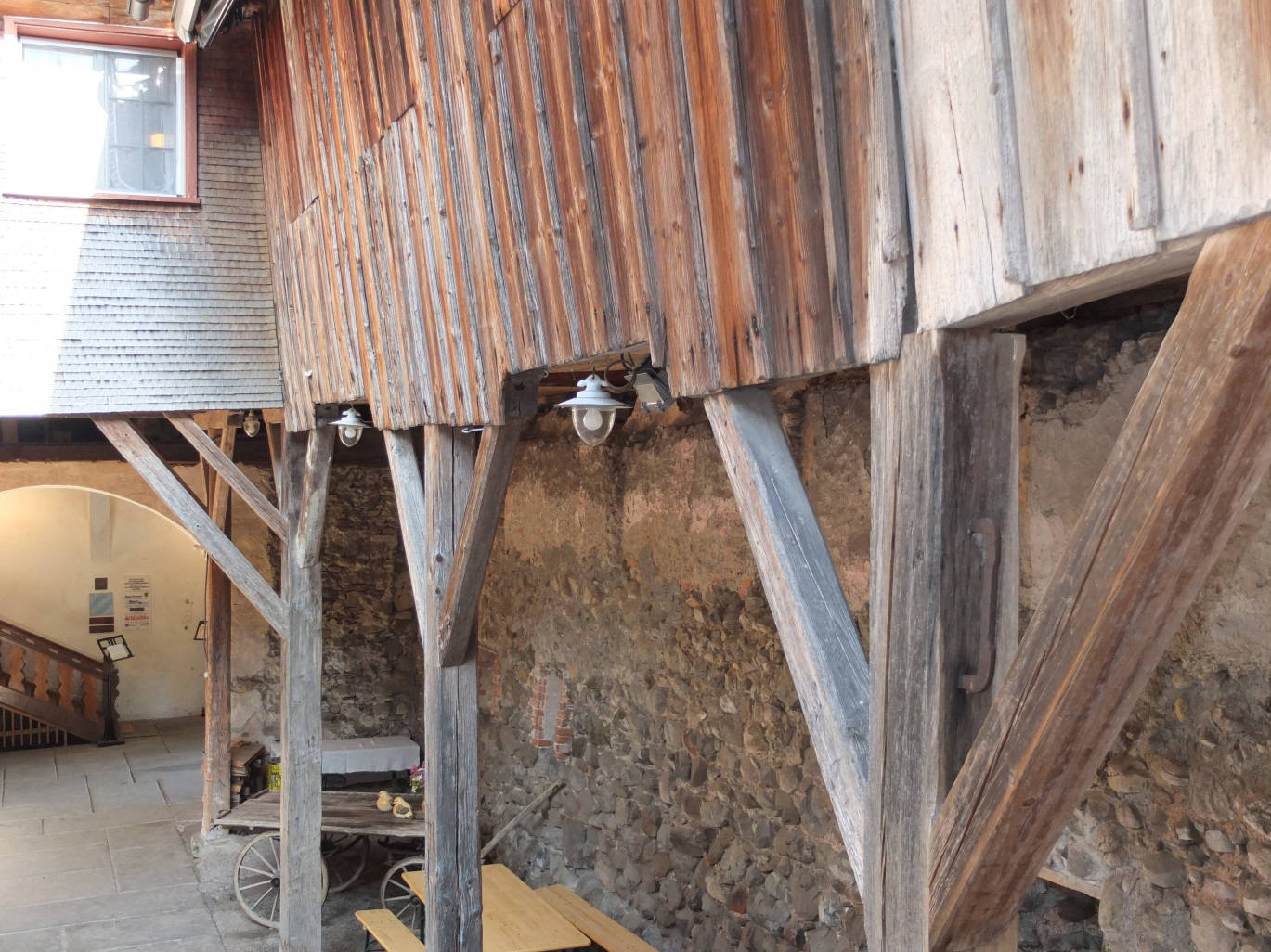 Im Hof des Wasserschlosses Hagenwil treffen Gebäudeteile aus verschiedenen Epochen zusammen. Manche Räume und Winkel liegen im Dornröschenschlaf. Was nicht genutzt wird, droht zu zerfallen, und die baulichen Improvisationen und Reparaturen aus vielen Jahrzehnten machen sich in einer mangelhaften Statik bemerkbar.